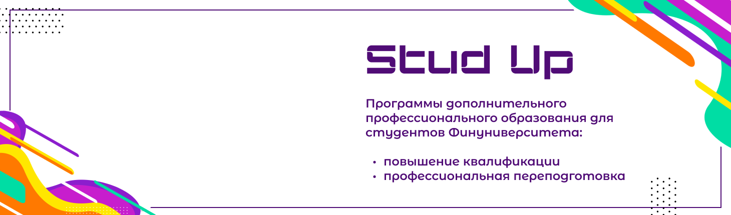 StudUp – это проект для студентов Финансового университета, а также его филиалов для получения дополнительного профессионального образования. Благодаря StudUp, вы сможете пройти обучение по программам дополнительного образования Финуниверситета по льготной стоимости.